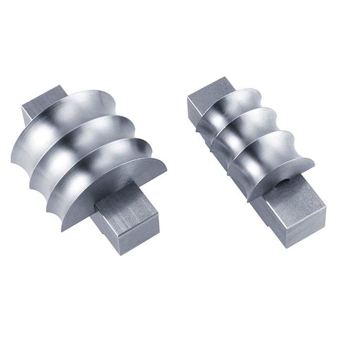 Use these matched dies in your Bonny Doon press to create 2" triple anticlastic bracelets free of kinks or creases. Forms are 1/2", 3/4" and 5/8" wide. Use all three forms at once with 2"-wide sheet to make a wide bangle or cuff, or use any of the three anticlastic forms individually with 1/2"-, 3/4"- or 5/8"-wide strips for narrower bracelets. This die set works with the Bonny Doon bracelet-forming kit or die adapter. A urethane is required.