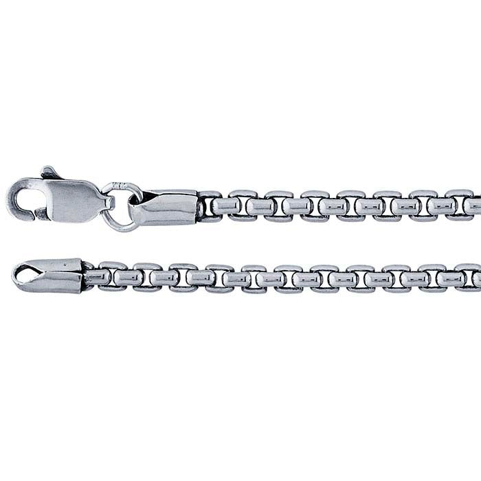 Sterling Silver Oxidized 2.5mm Rounded Box Chain