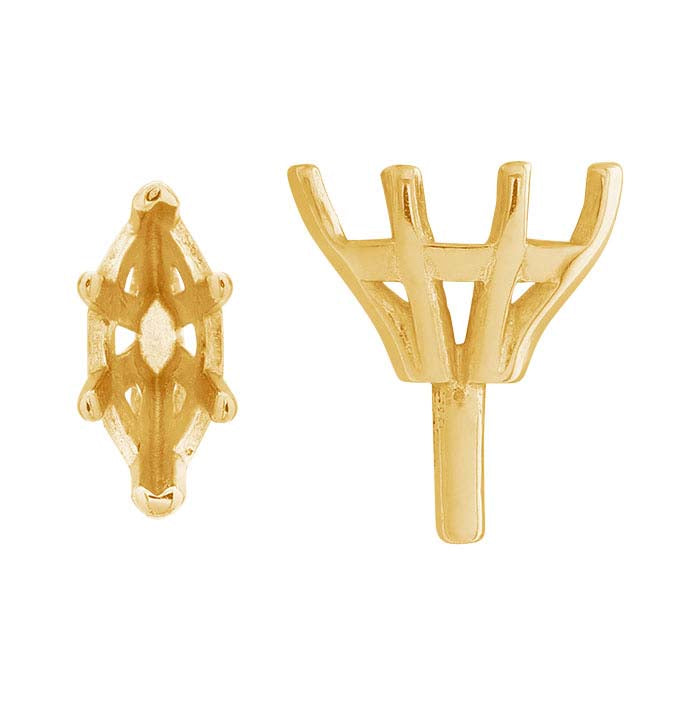 Šis 14 karatų geltono aukso laikiklis laiko vieną 7 x 3.5 mm marquise formos briaunuotą brangakmenį. 6-krapanų laikiklis suteikia papildomą saugumą dideliems arba vertingiems brangakmeniams. Naudokite kaištinius laikiklius žiedų koteliuose su skylute; jie leidžia tiksliau, švariau ir greičiau pozicionuoti laikiklį ant kotelio. Jei pageidaujate, nukirpkite kaištį, kad galėtumėte naudoti laikiklį su kitais žiedų koteliais ar komponentais.