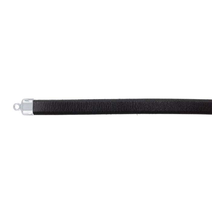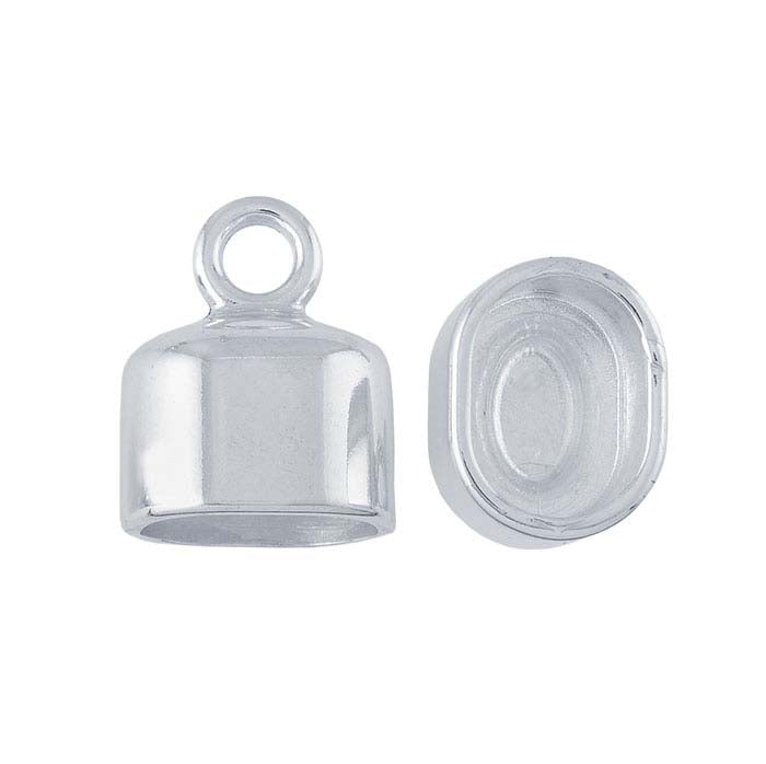 This sterling silver oblong end cap is ideal for use with licorice leather cord and features a bright finish. To use with cord, simply use jeweler's epoxy to secure the cord.