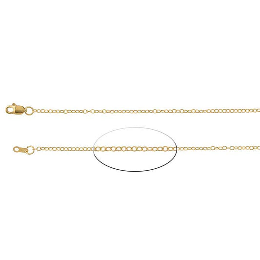 14/20 geltono aukso užpildyta 1,5 mm ovalo formos kabelinė grandinėlė, už pėdą