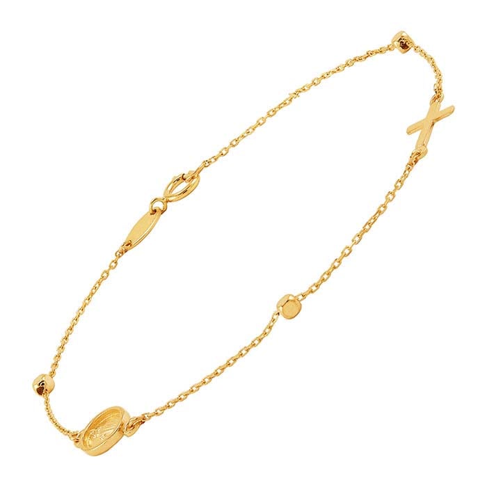 Ši 14 karatų geltono aukso apyrankė turi kryžių su tiesiomis rankomis ir Palaimintosios Motinos Marijos pakabukus ant forzatinos grandinėlės. Ji puikiai atrodo tiek viena, tiek kaip sluoksniuotos išvaizdos dalis. Apyrankę užbaigia spyruoklinis žiedinis užsegimas.