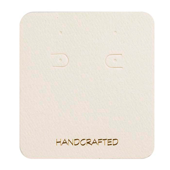 Ši universalioji papuošalų kortelė tinka daugumai segtukų ir įsisegamų auskarų stilių bei suteikia švarų foną, kuris geriausiai atskleidžia jūsų papuošalus. Priderinkite kortelę su etikete arba karštai spaustu logotipu (parduodama atskirai), kad papildytumėte savo prekės ženklą ir spalvų schemas; kortelėje yra užrašas "RANKŲ DARBO." Kortelė pagaminta iš dramblio kaulo spalvos kartono (100 svarų; be rūgščių; 30 % perdirbtų pluoštų) ir turi apvalintus kampus.