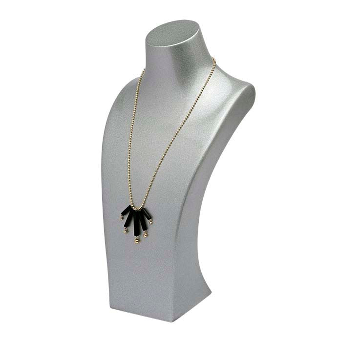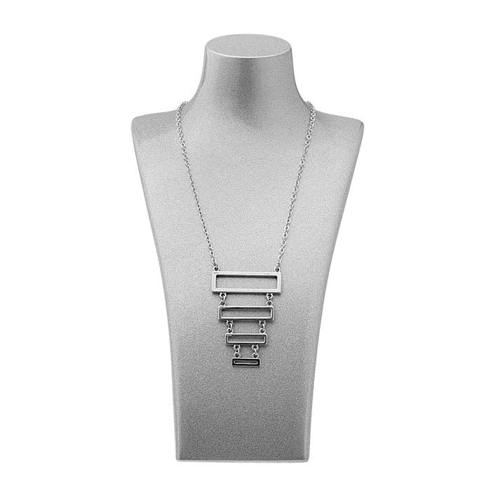 Metalinis sidabro spalvos plastikinis kaklo papuošalų stovas