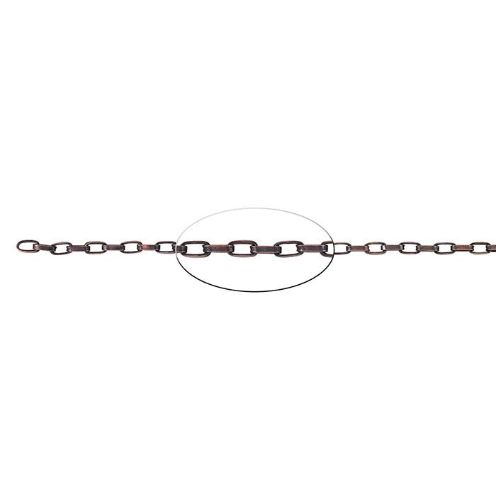 Plieninė antikinio vario apdaila 2,7 mm plokščia ovalo formos kabelinė grandinėlė, 6,1 m ritė