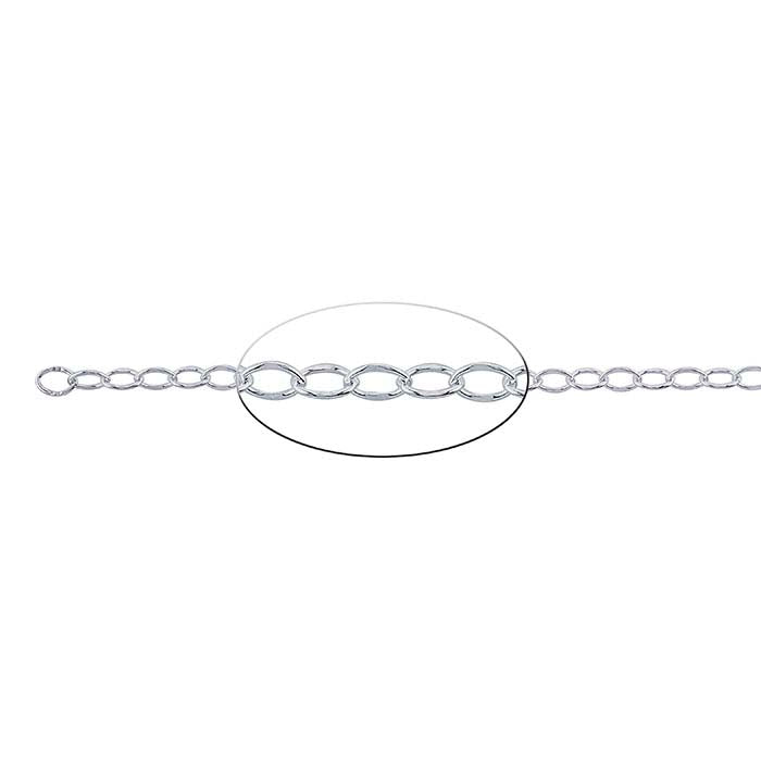 Šio sterlingų sidabro ovalo formos kabelinės grandinėlės dapped jungtys suteikia šviesą atspindinčią tekstūrą šiam universalų grandinėlės stiliui. Pasiūlykite ją tokia, kokia yra, arba naudokite kaip foną pakabukams, lašams ir kabantiesiems elementams. Dažniausias grandinėlės stilius – kabelinės grandinėlės, kurios susidaro paprasčiausiai sujungiant viengubas jungtis statmenai viena kitai galais. Jungtys gali būti apvalios, ovalios arba kitų formų.