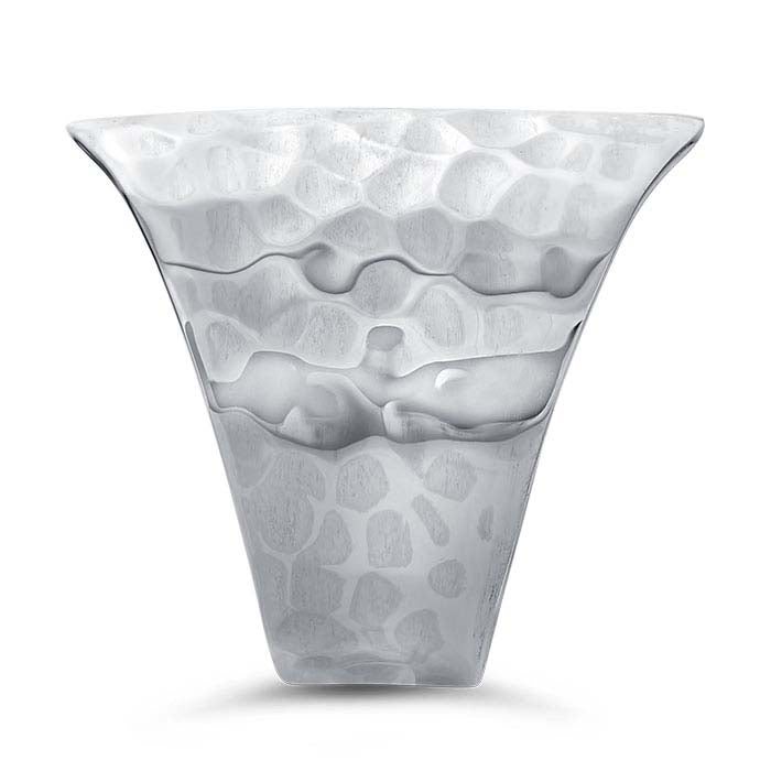 This handcrafted sterling silver ring features a shield shape that creates a bold geometric look. It has a light-catching hammered finish and the design allows for small sizing adjustments.