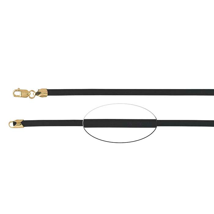 Zwarte rubberen 3mm koordketting met 14K geelgouden sluiting