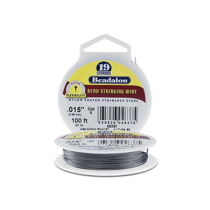 Deze Beadalon® Designer Series 19-draads heldere draad is een ideale keuze voor het rijgen van kralen met verschillende gaatjesmaten, en wanneer sterkte vereist is; de heldere roestvrijstalen kleur past goed bij zilveren en andere witmetalen sluitingen en componenten. Deze dikte is een uitstekende keuze als allround draad voor kettingen, armbanden en enkelbandjes met diverse materialen, waaronder middelzware tot zware edelstenen, kristallen, zaadkralen, glas- en metalen kralen. Negentien miniatuurdraden van sterk roestvrij staal zijn samengebonden en gecoat met een dunne, kristalheldere nylonlaag die de draad beschermt, mooi knoopt en knikken voorkomt. Deze draad wordt geleverd op een spoel van 100 ft.
