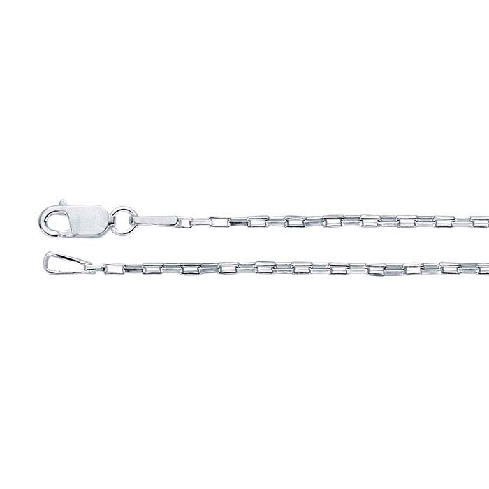 Langwerpige schakels geven de traditionele sterling zilveren boxketting een slank, gestroomlijnd uiterlijk dat perfect past bij kleinere, eigentijdse hangers en druppels.