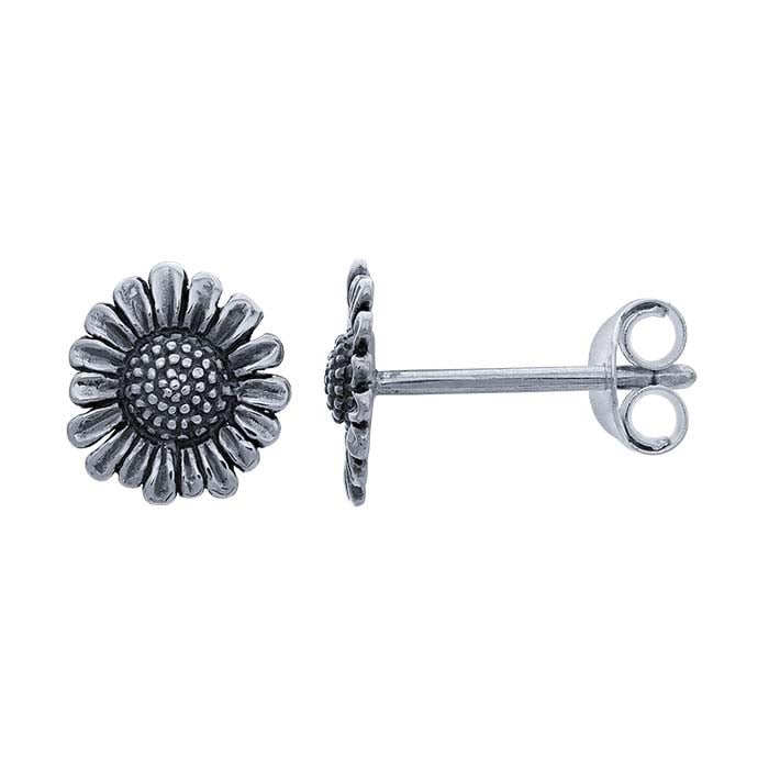 These finished sterling silver post earrings feature a realistic daisy design and are oxidized to highlight the details. The friction post offers two grooves, allowing customers to customize the fit of their earring; ear nuts are included.