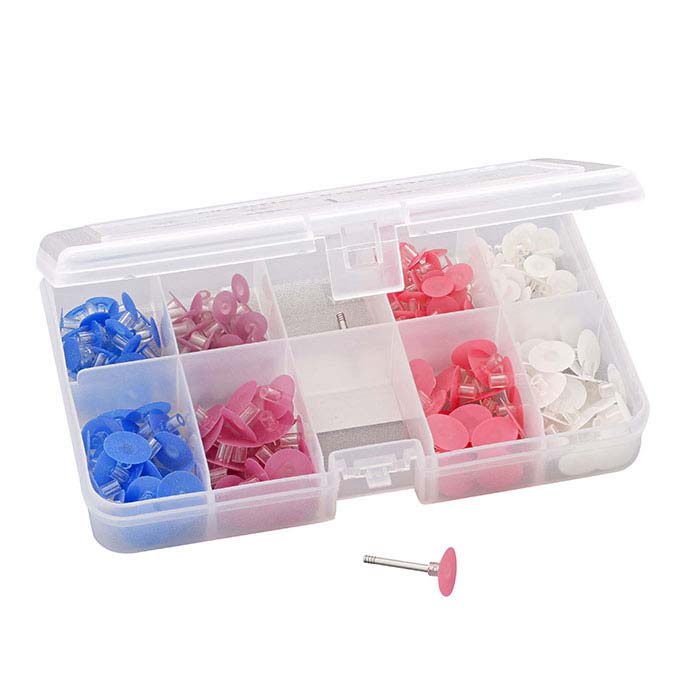 This kit includes a 240-piece assortment of Stoddard Maxflex snap-on style foil discs and two snap-on mandrels. Maxflex discs are coated on one side with aluminum oxide; the flexibility of the foil gives the abrasive surface ideal access to your work area. The discs work well on a variety of materials, including precious and non-ferrous metal. The disc features a hard plastic sleeve that slides onto a snap-on mandrel; to remove it place one finger on either side of the disc and pull it off the mandrel.