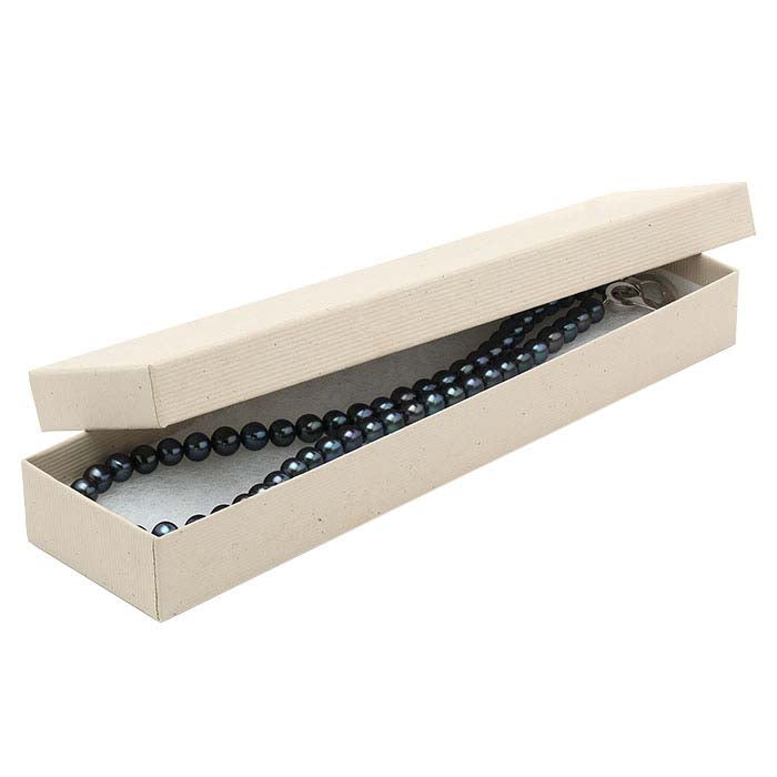 Denne to-delte universale esken med papirbelegg rommer en rekke smykkestiler. Bruk esken som den er, eller kombiner den med ensfargede pappesker for å lage fargekombinasjoner som passer ditt merke, til sesongbasert emballasje eller spesielle anledninger. Legg til et dekorativt bånd, gaveinnpakning eller sløyfe (selges separat) for å tilpasse hver eske. Hvete-farget resirkulert papir (100 % post-forbruker fiber) dekker den 100 % resirkulerte pappesken (laget med 90 % post-forbruker fiber og 10 % pre-forbruker fiber); esken inkluderer en 1/2" tykk hvit polyfill som ikke vil forårsake misfarging. Hot-stamp din gaveeske med firmanavn eller logo, og hold deg i minnet lenge etter smykkesalget.