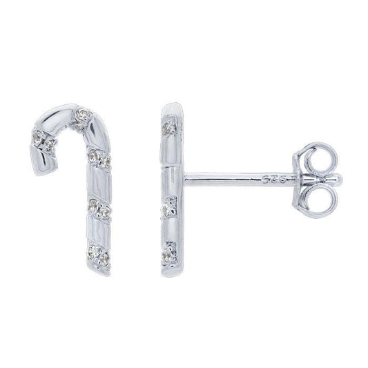Sterling Silver CZ-Set Candy Cane Post Earrings