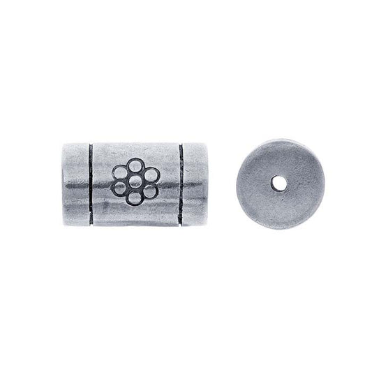 Sterling sølv 15 x 8,5 mm sylinder oksidert mønstret perle