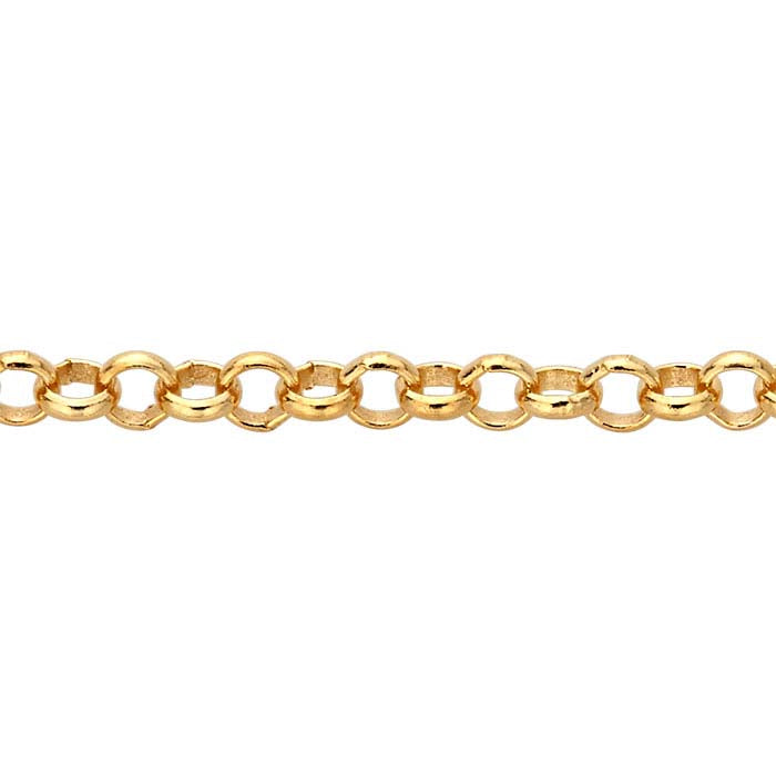 Denne 14/20 gule gullfylte runde rolo-kjeden er en grunnpilar i smykkedesign og et ideelt valg for å legge til anheng, dråper og charms. Kjeden er belagt med 18 karat gult gull og inkluderer en kvalitetsmerkelapp. Lenkene som utgjør rolo-kjeden er laget av flatt eller halvrundt tråd, slik at hver lenke er bredere enn trådens tykkelse. Formen på lenkene kan være rund eller oval—lenkene på denne kjeden er runde.