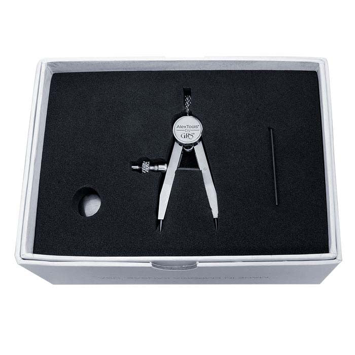 Designet av verdensklasse steinsetter Alexandre Sidorov, er AlexTools® by GRS® divider utviklet for å hjelpe deg med å ekspertmessig legge ut edelstenene dine, kanter og mer. En konstruksjon av høy kvalitet som forblir fast i målingen din gjør dette verktøyet bygget for styrke, nøyaktighet og lang levetid. De presise karbidpunktene kan tilpasses med diamantklinger for dine oppgaver og er utskiftbare (1160661, tilgjengelig separat). Den leveres med en unbrakonøkkel og to graverbare rustfrie skiver.
