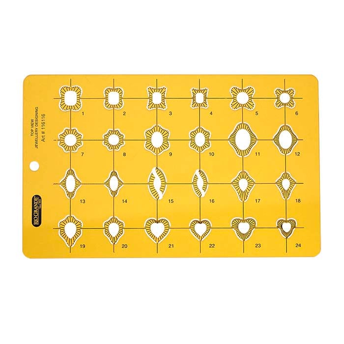 Utnytt din verdifulle designtid best mulig ved å legge ut smykkedesignene dine på papir. Denne malen inneholder ringformer sett ovenfra i 24 stiler, ideell for å designe et bredt spekter av ringer. Gi kunden din en nøyaktig gjengivelse av ditt foreslåtte design slik at de bedre kan visualisere det ferdige smykket.