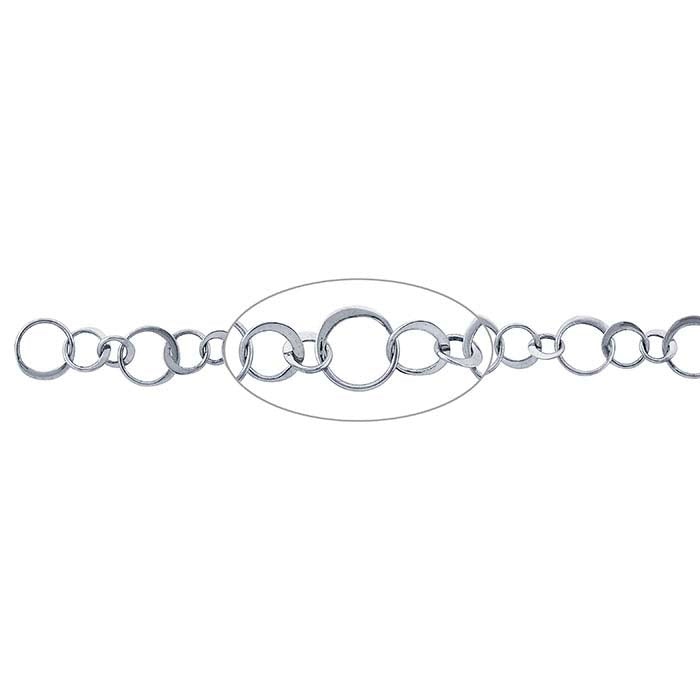 Sterling sølv 10 mm flattrykte sirkler kabelkjede, per fot