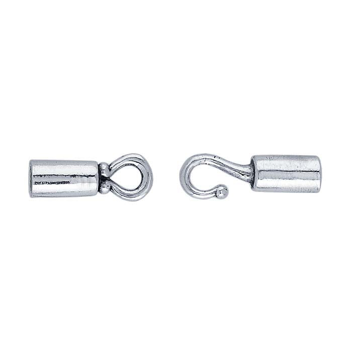 This sterling silver tube-end hook & eye clasp is easy to use and presents an attractive, professional finish for chain or cord bracelet and necklaces designs. Attach the clasp ends by soldering chain into the tube ends or use jeweler's epoxy to secure cord into place. Hook & eye clasps are two part clasps that close by hooking one side (the hook) to a large closed ring (the eye). They tend to be larger than other clasp types and are ideal for larger designs, bead strands or bib-style necklaces. The open hook relies on the necklace having enough weight to keep the clasp secure.