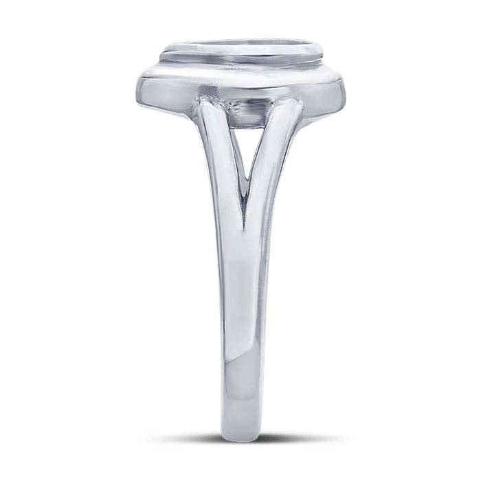 This sterling silver ring mounting features a split-shank design and a bezel setting that accommodates one 7 x 5mm pear-shaped cabochon. Use jeweler's epoxy to secure your stone into the bezel.