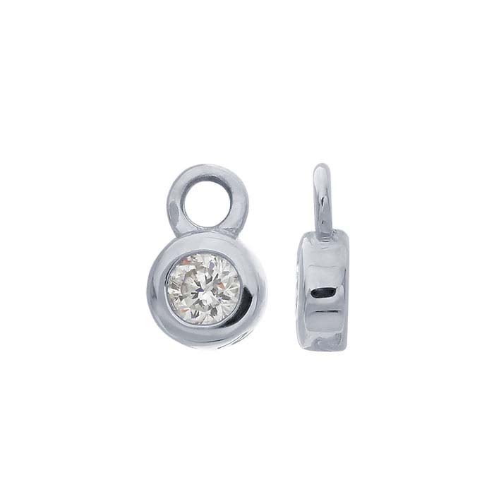 Ten 14-karatowy biały złoty charms jest oprawiony w oprawę typu bezel z jednym okrągłym diamentem o masie 0,025 ct (czystość SI–I1/kolor G, H, I). Nawlecz go na łańcuszek, połącz z bransoletką, przymocuj do bigla lub użyj jako zawieszkę do biżuterii albo akcent w większym projekcie.