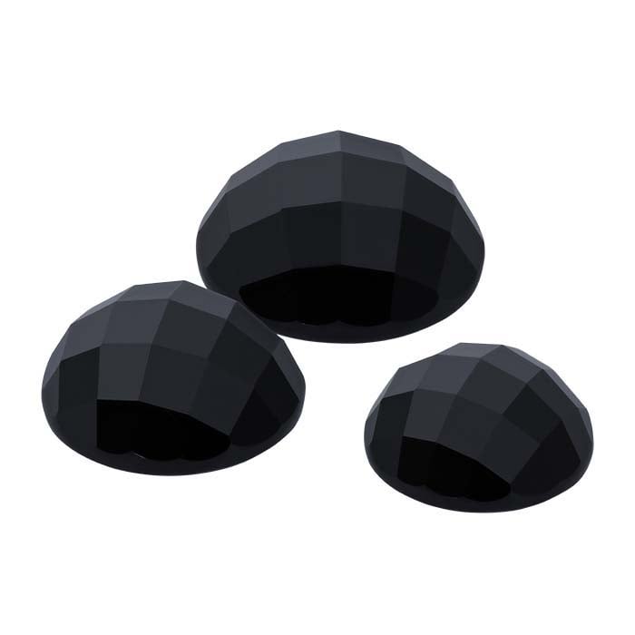 Dodaj dramatyzmu swoim projektom dzięki czarnemu kaboszonowi z cyrkonii. Posiada atrakcyjne szlify różane, które czynią go przyciągającym wzrok dodatkiem do Twoich projektów. Połącz go z kolorowymi cyrkoniami, aby stworzyć dopasowane zestawy lub odważne, wielokolorowe kompozycje. Cyrkonia jest wytwarzana laboratoryjnie i stanowi ekonomiczną alternatywę dla diamentu. Ulubiony w przeszłości, ten szlif różany charakteryzuje się płaską podstawą (bez pawilonu) oraz koroną złożoną z trójkątnych faset.