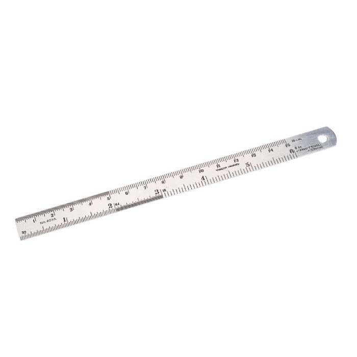 Ta stalowa linijka oferuje precyzyjnie oznaczone podziały i zawiera przydatne źródło informacji na odwrocie do konwersji miar. Oznaczona zarówno w calach, jak i milimetrach, wytrawione tabele są trwałe i łatwe do odczytania.