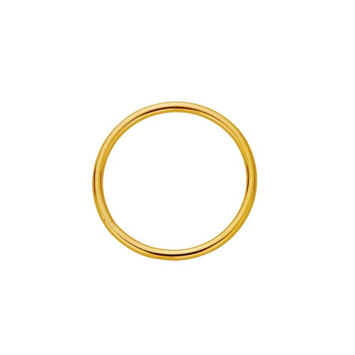 This 14/20 yellow gold-filled round closed ring is an ideal connector for gold-filled designs. Closed rings have no opening and are ideal as attach rings for clasps, as end rings on strung or wire-wrapped pendants, drop or dangle designs, or as connecting rings between fabricated or metal-formed links and components. This ring is plated with 14-karat yellow gold to ensure a uniform color.