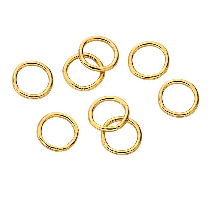 This 14/20 yellow gold-filled round closed ring is an ideal connector for gold-filled designs. It is plated with 14-karat yellow gold to ensure a uniform color.Closed rings have no opening and are ideal as attach rings for clasps, as end rings on strung or wire-wrapped pendants, drop or dangle designs, or as connecting rings between fabricated or metal-formed links and components. A closed ring presents a strong, smooth finish with no joint and no need to solder.