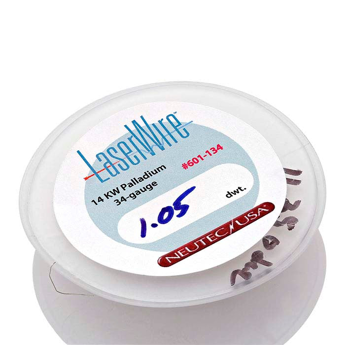 The bright white of palladium white gold alloy eliminates the need to rhodium plate white gold for improved color and is an excellent choice for higher price-point designs. This nickel-free palladium white wire is the ideal weight for all your laser-welding applications. It's coiled onto a special spool featuring one flat, rigid side and one rounded, flexible side that seal gently together, holding the wire steadily in place while you work.