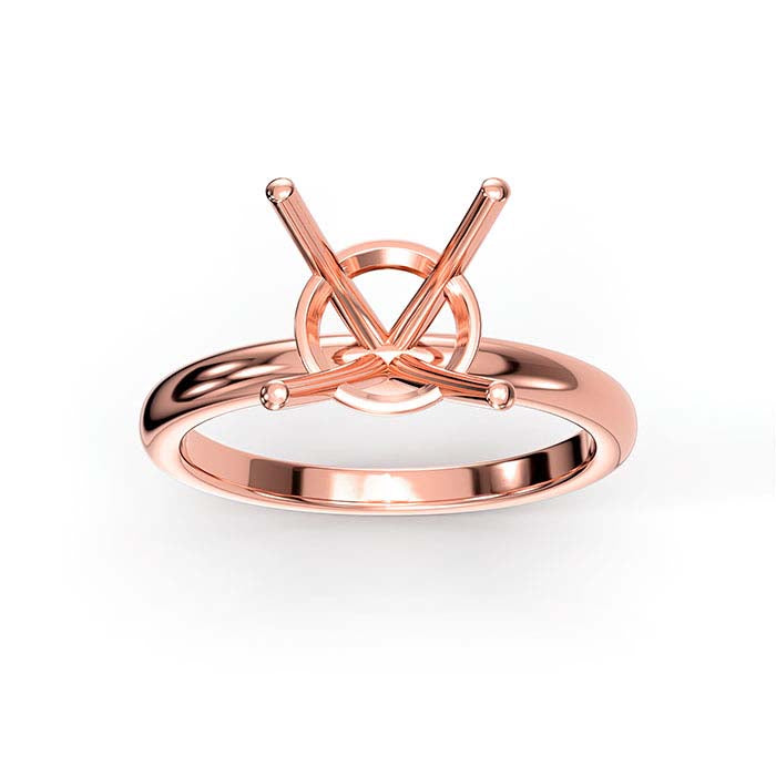 This 14-karat rose gold ring mounting offers a classic solitaire design and holds one 6.5mm (1-ct., approx.) round faceted gemstone in a 4-prong basket setting. Cut a seat in the prongs to accommodate your gemstone, then burnish the prongs over the stone to secure it in place.