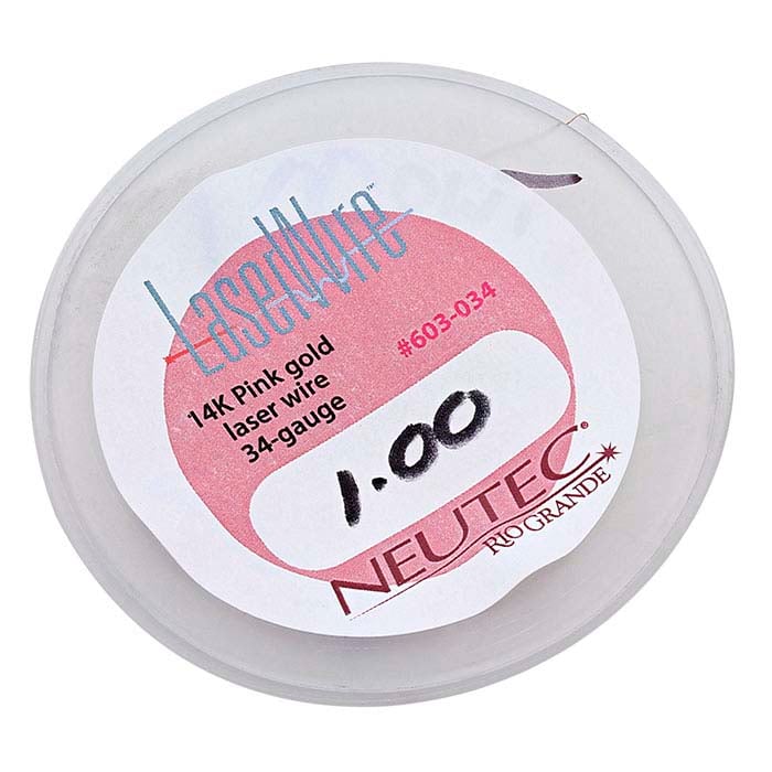 This 14-karat rose gold wire is the ideal weight for all your laser-welding applications. It's coiled onto a special spool featuring one flat, rigid side and one rounded, flexible side that seal gently together, holding the wire steadily in place while you work.