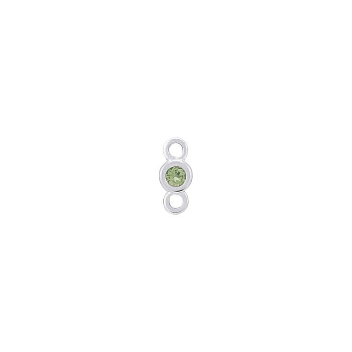 This 14-karat white gold link component is bezel-set with a round faceted 1.5mm peridot, the birthstone for August. Use jump rings to link multiple components together to create a chain, or connect a variety of drops and dangles in more complex necklace, bracelet or earring designs.