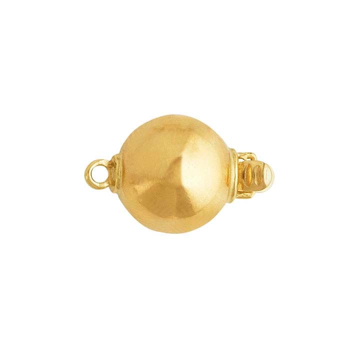 Ideal for use with pearl strands, this 14-karat yellow gold bead safety clasp features a smooth bright finish that looks great with a variety of jewelry styles. Designed for single-strand use, the shape of this secure closure blends seamlessly into a strand of round pearls. Safety clasps (also called pearl clasps) feature two parts that connect in two different ways, providing a fail-safe that helps prevent loss of higher-value necklaces or strands and are ideal for pearl and gemstone strands. The interior part of the clasp is a slender hook with notches along the outer edge; the exterior part is hollow except for a locking bar. The interior part hooks over the locking bar and then slides inside the exterior part, the notches catching along the inner sides to hold the clasp securely closed. Even if the notches fail for any reason, the hook keeps the strand in place.