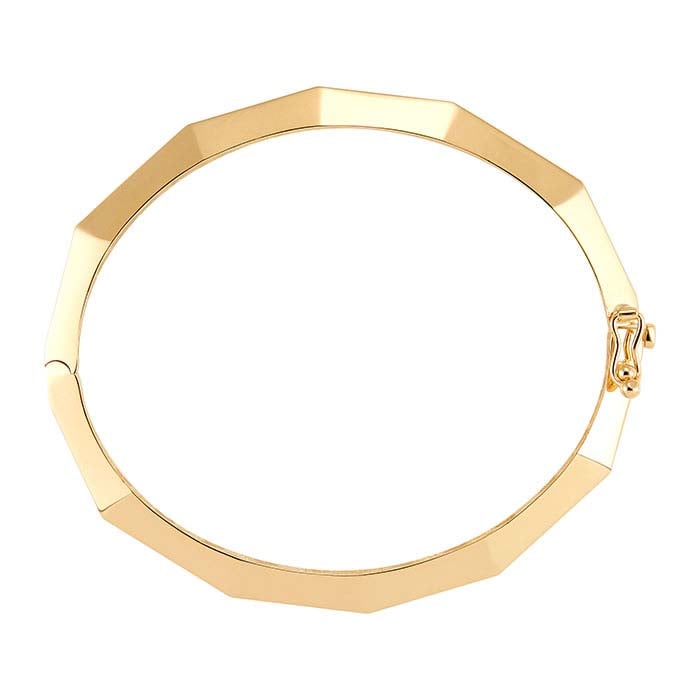 14K Yellow Gold Bamboo Design Hinged Bangle Bracelet