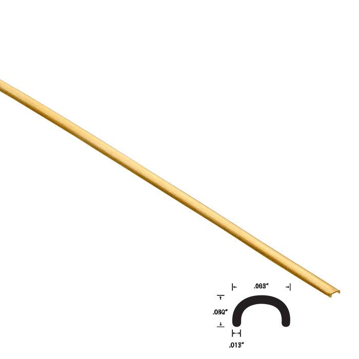 This 1/2-hard, 14-karat yellow gold channel wire offers the look of 1/2 round wire with 1/2 the weight. It is ideal for creating accents such as around a bezel or as part of a ring shank or pendant.Metal that is 1/2-hard is partially work-hardened and will hold its shape under some stress; ideal for forming structures that will support other components. Keep in mind that metal hardness is changeable by annealing, heat-hardening or work-hardening.This wire is packaged in coils and can be cut to any length that satisfies the system minimum. Orders must weigh at least 0.01 dwt.; if you click "Add to Cart" for a quantity less than this, the cart will offer a prompt to let you know what the minimum for this item is.