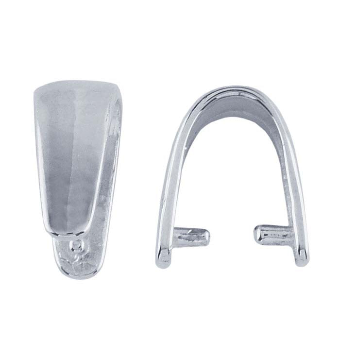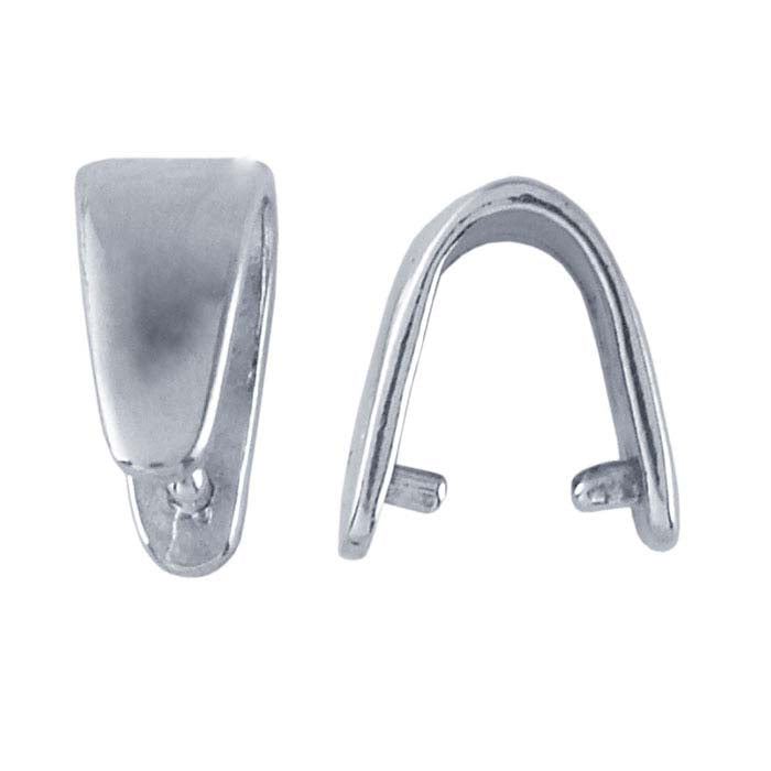 This Argentium® Silver tapered pinch bail mounting is adjustable and accommodates a variety of shapes and diameters of beads or other drilled or divoted findings. Use it with a drilled briolette or gemstone bead for an easy and elegant pendant. Facing pegs inside the mounting fit into the bead holes; trim the pegs as needed. For a permanent mounting, use jeweler's epoxy to secure the pegs inside the holes.Made with a touch of germanium, Argentium® Silver presents a bright-white color that is closer to fine silver than traditional sterling, yet is highly resistant to firescale and less likely to tarnish under most conditions. It welds flawlessly and is ideal for fusing techniques. All Argentium is guaranteed by Argentium International Ltd. Your customers will appreciate the value and convenience of brighter-white sterling silver designs that resist tarnishing and keep on shining.