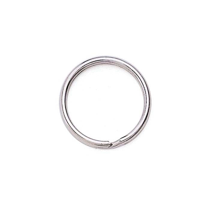 This base metal round split key ring is nickel plated for durability and a bright white finish. Split rings are ideal for key chains, backpack and purse pulls or to connect design components.