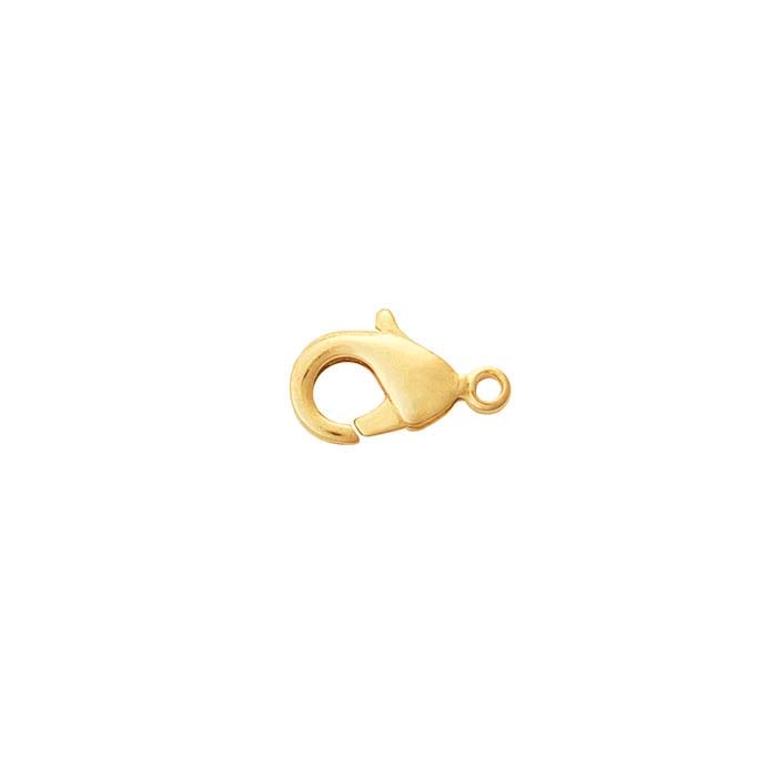 One of the most common clasp styles, the lobster clasp is a secure and easy-to-use closure that pairs well with a variety of jewelry styles. Named for its resemblance to the action of a lobster claw, this clasp features a hook shape with a spring-operated closure. Simply press the ring at the opposite end of the strand against the closure, pushing it open enough to let the ring pass onto the hook (or press the release lever to open the closure). The spring holds the clasp closed until the lever pulls it open to release the ring. This clasp is plated with yellow gold to help you offer customers the color of gold at a more attractive price.