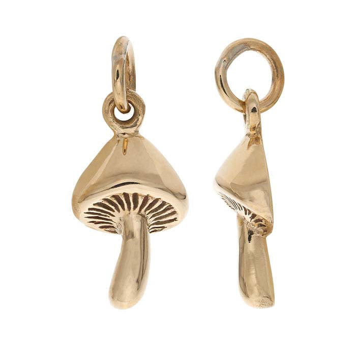 This bronze mushroom charm features realistic detail. The charm makes a great addition to a bracelet or themed design, and it works well as a simple drop for earrings. It includes a jump ring.