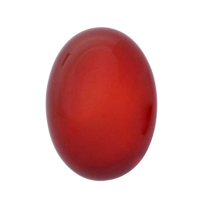 The dramatic, deep orange-red color of this oval carnelian cabochon makes it a beautiful option for custom jewelry designs; the gemstone's relative hardness makes it a good substitute for other softer gems in pieces that will see wear, such as bracelets and rings. For an almost gothic look, match it with black onyx.Carnelian is a type of chalcedony with a semi-opaque to translucent reddish-orange color. Its color comes from its iron oxide content and gemstones may present a uniform color or be faintly banded. Its name comes from the Latin "cornum," meaning cherry, due to the resemblance of its color to that fruit; carnelian is reputed in folklore to engender eloquence in its wearers.