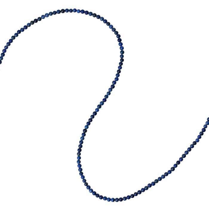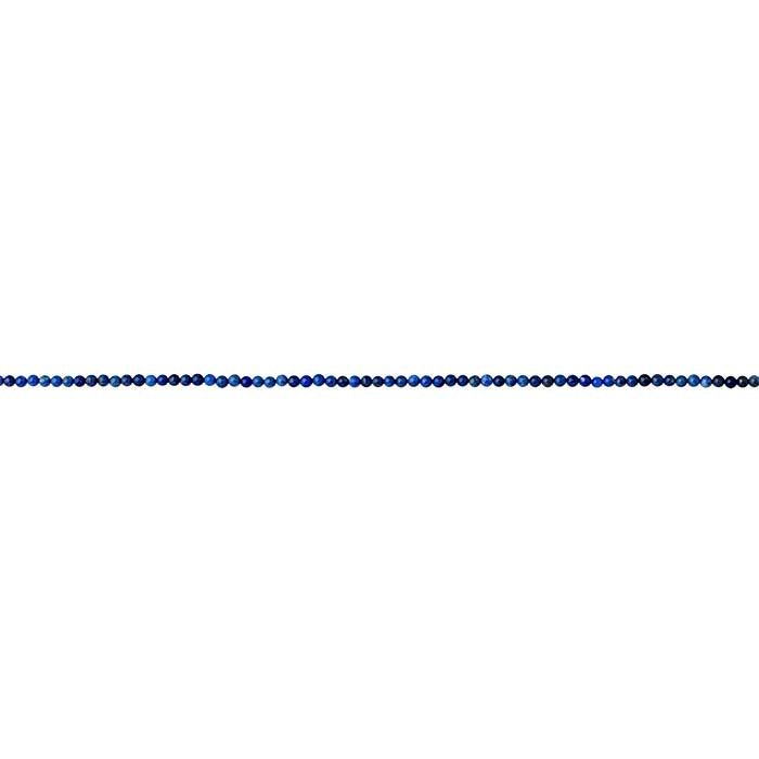 The round denim lapis beads in this strand feature an attractive cornflower blue color. Round beads are a staple of strung designs and look great when strung on their own to create a simple strand, used individually as separators or accent beads, or combined with other shapes and sizes of beads in more complex earring, bracelets and matched sets—combine them with complementary-color stones to create complex designs.Denim lapis displays a range of blue colors, light to medium, with sometimes extensive white streaking and patterning that is reminiscent of denim jeans. The white veining is due to elevated calcite levels in the stone.Ready to string, this package contains one temporarily strung 15"–16" strand.