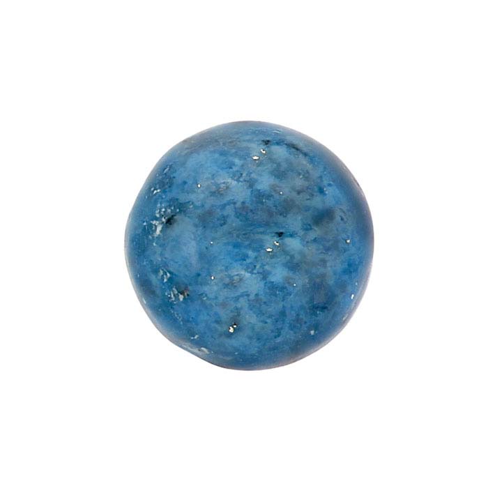 Featuring a range of blue colors and various dark and/or light patterning, this round denim lapis cabochon—named for its resemblance to denim—is an ideal choice for more casual jewelry designs. Use it by itself to create pendants or earring drops; pair it with an assortment of complementary-color gemstones to create more complex necklace designs. Denim lapis displays a range of blue colors, light to medium, with sometimes extensive white streaking and patterning that is reminiscent of denim jeans. The white veining is due to elevated calcite levels in the gemstone.Lapis lazuli is a metamorphic gem composed of lazurite, pyrite and calcite. It exhibits a shade of blue resulting from the relative color percentages of these minerals. Represented in folklore as a symbol of the starry night, lapis lazuli is said to stimulate the intellect and support wisdom.