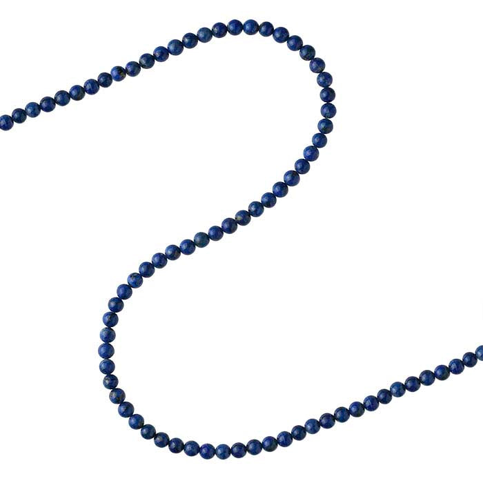 The round denim lapis beads in this strand feature an attractive cornflower blue color. Round beads are a staple of strung designs and look great when strung on their own to create a simple strand, used individually as separators or accent beads, or combined with other shapes and sizes of beads in more complex earring, bracelets and matched sets—combine them with complementary-color stones to create complex designs.Denim lapis displays a range of blue colors, light to medium, with sometimes extensive white streaking and patterning that is reminiscent of denim jeans. The white veining is due to elevated calcite levels in the stone.Ready to string, this package contains one temporarily strung 15"–16" strand.