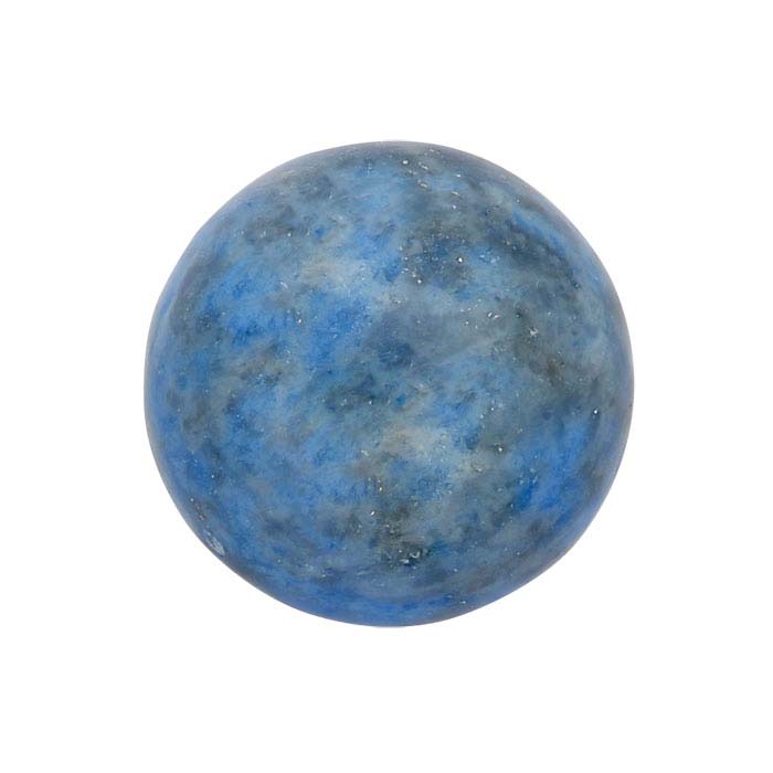 Featuring a range of blue colors and various dark and/or light patterning, this round denim lapis cabochon—named for its resemblance to denim—is an ideal choice for more casual jewelry designs. Use it by itself to create pendants or earring drops; pair it with an assortment of complementary-color gemstones to create more complex necklace designs. Denim lapis displays a range of blue colors, light to medium, with sometimes extensive white streaking and patterning that is reminiscent of denim jeans. The white veining is due to elevated calcite levels in the gemstone.Lapis lazuli is a metamorphic gem composed of lazurite, pyrite and calcite. It exhibits a shade of blue resulting from the relative color percentages of these minerals. Represented in folklore as a symbol of the starry night, lapis lazuli is said to stimulate the intellect and support wisdom.