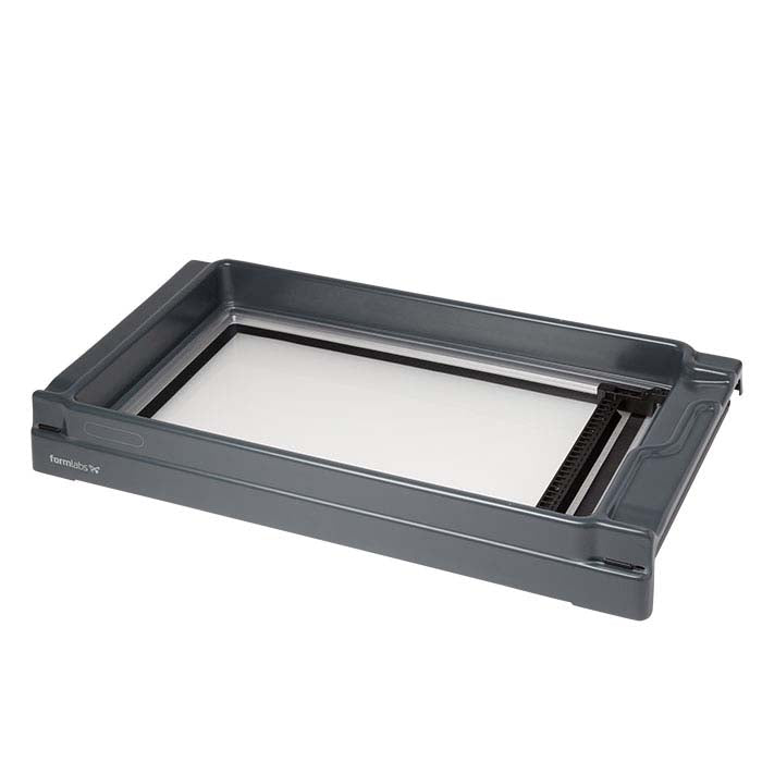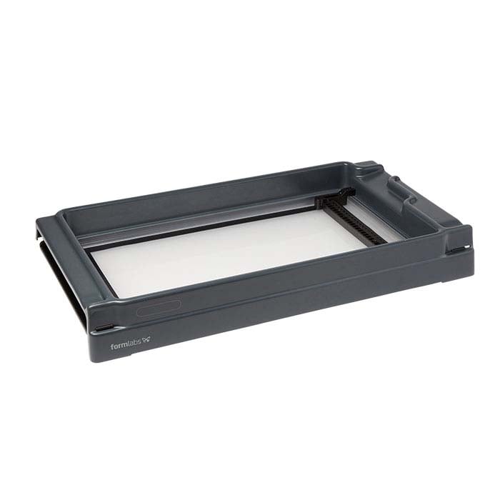 This Formlabs Form 3L resin tank delivers excellent service life for all resin types in your Form 3 3D printer. This replacement tray is ideal for helping you to expand production or to replace a lost or damaged resin tank. This resin tank is specially made to work with the larger Form 3 printer and its modeling resins, High-Temp and Gray, as well as its castable resin varieties, Formlabs Blue and Purple. Use the included lid to cover the tank and store in a cool, dark place when not in use.