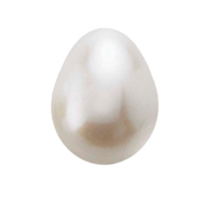 This A-grade freshwater cultured white drop pearl features a rounded teardrop profile and is half-drilled, making it ideal for setting onto pearl pegs for pendants, drops or earrings. Highlight its attractive white luster by setting it in silver or add contrast to custom designs by combining it with yellow-gold findings. Use jeweler’s epoxy to secure the pearl on a pearl peg.Freshwater cultured pearls are cultivated in fresh water from mussels, often the triangle shell mussel (Hyriopsis cumingii), that are specially selected for their prolific production of nacre. It is not unusual for a single mussel to produce multiple pearls simultaneously. According to one legend, the pearl was formed from the tears of the goddess of love. For many, pearls are a symbol of pure heart and mind, honesty and integrity.A-grade pearls feature surfaces that show a few insignificant blemishes. Their luster is good, exhibiting some depth.