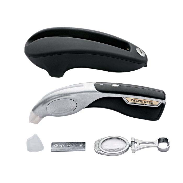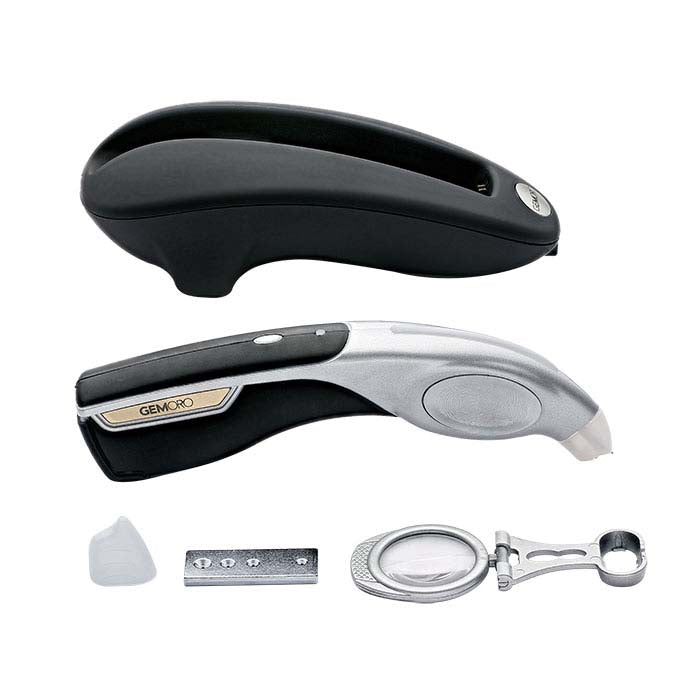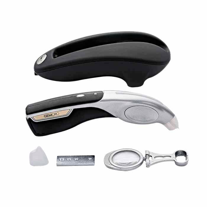 This Testerossa white diamond, moissanite and sapphire tester from GemOro® offers the ultimate protection against fraud—it identifies and differentiates white diamond, CZ, moissanite and sapphire; it's ideal for verifying sapphire watch crystals as genuine. Recommended by Charles & Colvard®, this tester features GemOro's exclusive UV-F1 Moissanite Identification Technology™, which detects the widest range of the electrically conductive moissanite (including the super-low Forever One® moissanite) to ensure that you get the most accurate and dependable result for every stone.