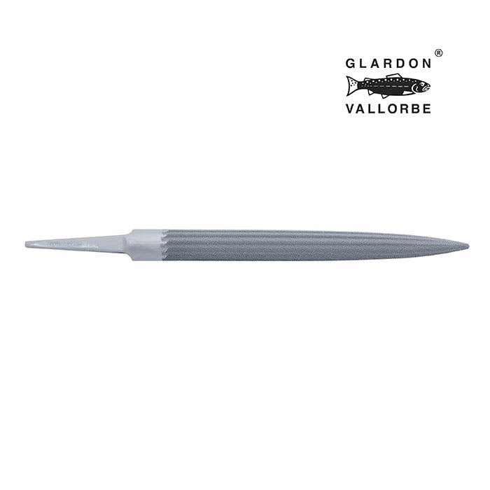 This Glardon Vallorbe® precision half-round hand file has one flat and one rounded side with teeth on both; it is ideal for filing both flat and curved surfaces. The file is double-cut and tapers in width and thickness to a point, allowing it to access crevices, small openings, corners and the inside of larger ring shanks.This file has a Swiss cut #0; Swiss-cut files are graded by the number of teeth, counting teeth perpendicular to the long axis of the file. In all cut styles, the higher the number, the finer its cut.A double-cut file features two sets of evenly spaced teeth set in two directions, one at a slightly different angle than the other. Double-cut files are designed to cut more aggressively, maximizing the work of each stroke to remove more metal with fewer strokes. At the end of the stroke, the file should be lifted from the workpiece and repositioned for the next stroke; dragging the file backward against the metal can mar the metal and damage the teeth.Hand files, also called 'full-size' files, feature a larger cutting surface that is longer and wider than other file types and are ideal for fast, efficient removal of material from the workpiece for initial shaping, for smoothing and, in finer cuts, for finishing. These files have a narrow, tapered tang intended to be secured into a handle (available separately) that provides comfort and control of the file when in use.The first choice for most jewelers, Glardon Vallorbe® files are manufactured to the highest production standards, made in Switzerland of the finest heat-tempered chrome-alloy steel, hardened to 65 HRC. The files are precision-ground to cut quickly and accurately and to last longer than just about any other file on the market.